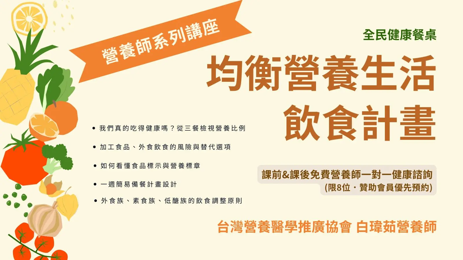 主講人:台灣營養醫學推廣協會 白瑋茹 營養師