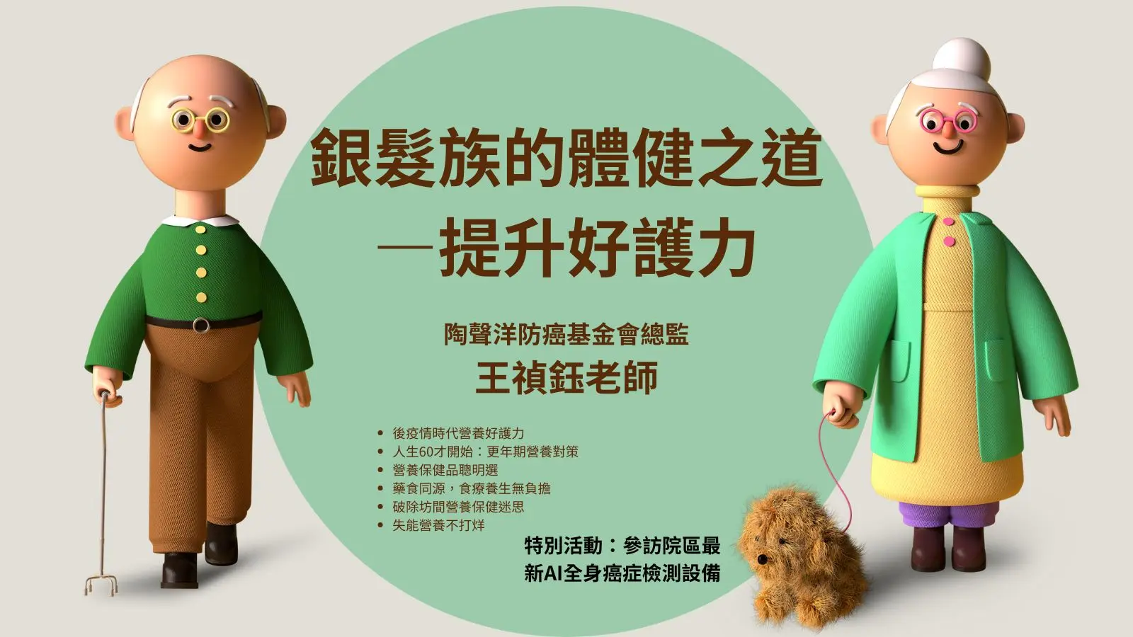 隨著台灣邁入高齡化社會,銀髮族的健康不僅影響生活品質,更與家庭幸福息息相關。本講座以「提升好護力」為核心,從營養、生活習慣到疾病預防,帶領大家掌握正確的營養保健策略,在後疫情時代重建免疫力,實現 健康長壽、樂齡無憂 的目標。