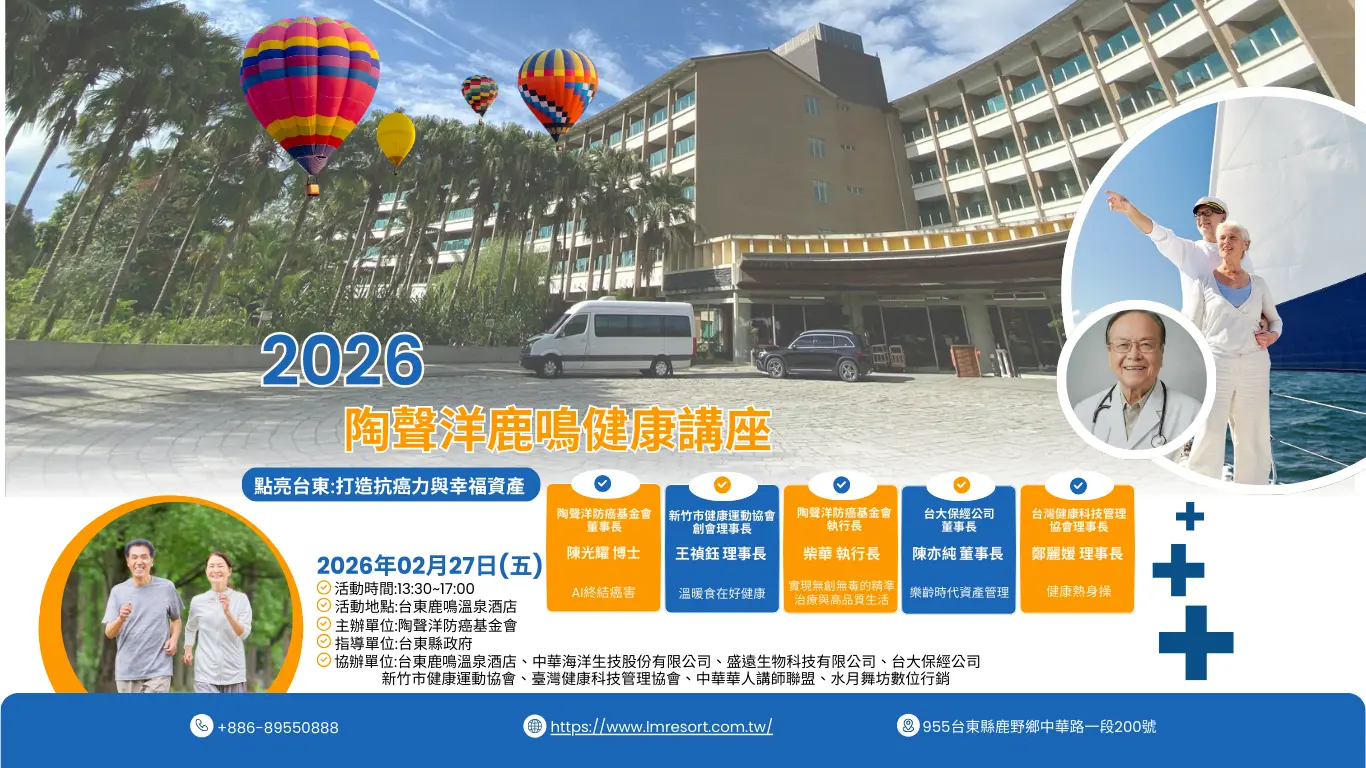 給台東的朋友們報好康給您!新春開工之際,我們特別邀請到專業醫師與頂尖講師群,在美麗的鹿鳴酒店舉辦一場精采絕倫的健康講座。這不僅是一場知識的交流,更是一份送給自己與家人最珍貴的健康禮物!
